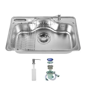 حله / حوض Golden 850 مقاس 85 × 51 سم ستانلس استيل غير قابل للصداء بسلة بالصرف 6 بوصة