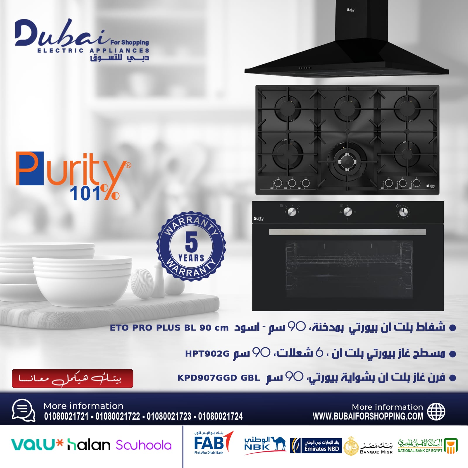 طقم بيورتى شفاط ETO PRO PLUS BL 90 cm \ مسطح HPT902G \ فرن KPD907GGD GBL