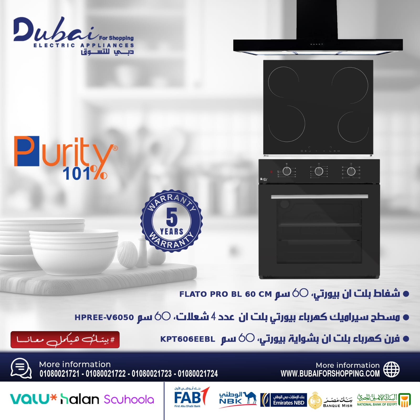 طقم بيورتى شفاط FLATO PRO BL 60 CM \ مسطح HPREE-V6050 \ فرن KPT606EEBL